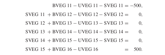 s = [[solver.NumVar(0, storage_limit, f"s_{i}{j}") for j in J] for i in I] # amount of oil i in storage at the end of month j